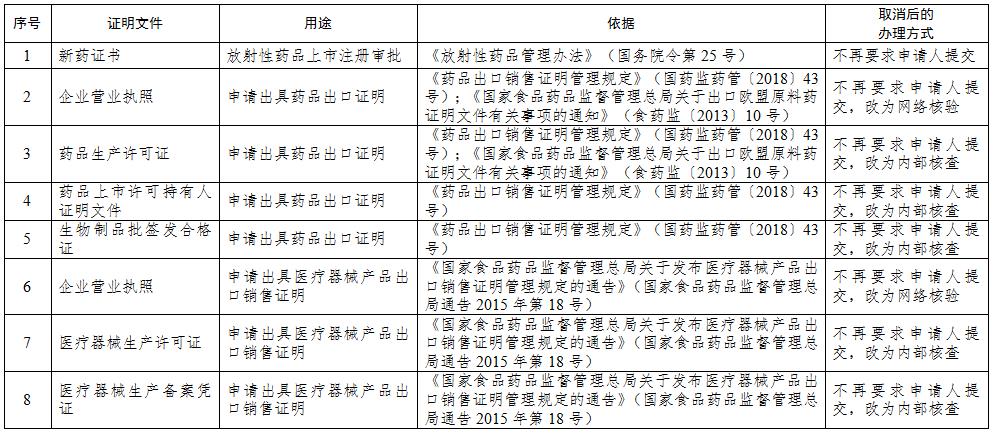 國(guó)家藥監(jiān)局關(guān)于取消8項(xiàng)證明事項(xiàng)的公告(第四批)