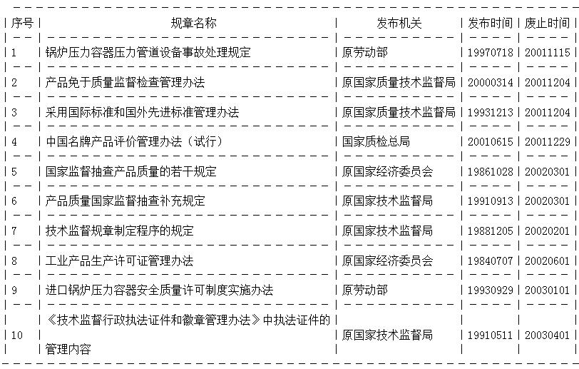 廢止部分質(zhì)量技術(shù)監(jiān)督行政規(guī)章目錄