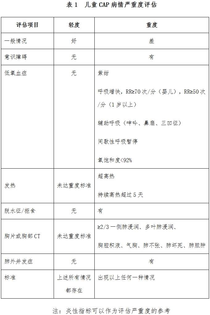 2.病情嚴(yán)重度需根據(jù)年齡、臨床和影像學(xué)表現(xiàn)等評估,見表1。