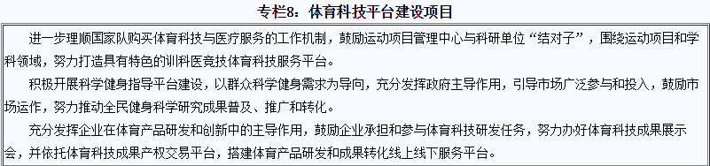--體育重點領(lǐng)域改革取得新突破,體制機制創(chuàng)新取得新成果。加快政府職能轉(zhuǎn)變,推進足球項目改革試點,加速職業(yè)體育發(fā)展,創(chuàng)新體育社會組織管理和體育場館運營,逐步完善與經(jīng)濟社會協(xié)調(diào)發(fā)展的體育管理體制和運行機制,基本形成現(xiàn)代體育治理體系。