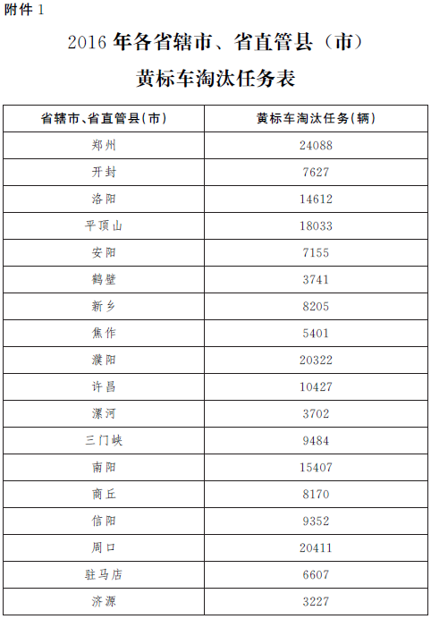 附件:1.2016年各省轄市、省直管縣(市)黃標車淘汰任務表