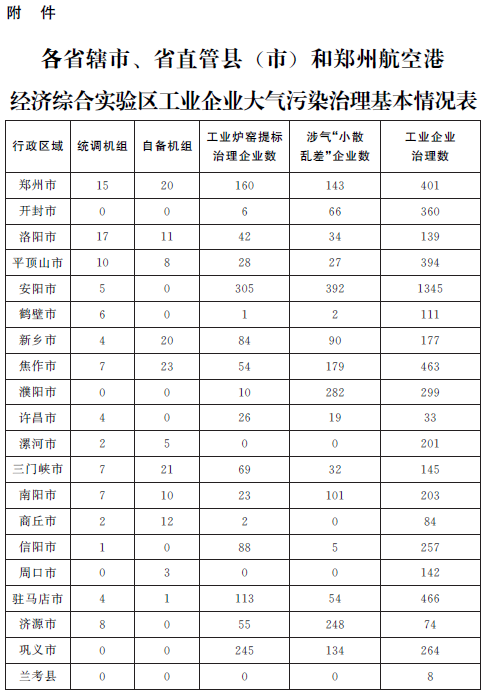 6.各省轄市、省直管縣(市)政府要在本方案所列工業(yè)企業(yè)名單的基礎(chǔ)上,繼續(xù)對轄區(qū)內(nèi)涉氣工業(yè)企業(yè)開展排查,掌握轄區(qū)內(nèi)所有涉氣工業(yè)企業(yè)情況,并實施動態(tài)更新,確保對所有涉氣工業(yè)企業(yè)實施高壓監(jiān)管。