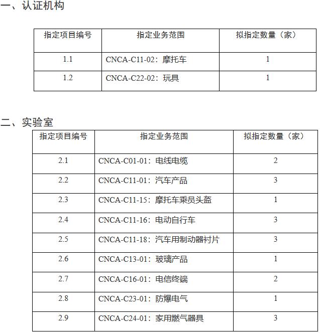 強(qiáng)制性產(chǎn)品認(rèn)證機(jī)構(gòu)和實(shí)驗(yàn)室指定需求表