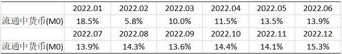 注4:自2022年12月起,“流通中貨幣(M0)”含流通中數(shù)字人民幣。12月末流通中數(shù)字人民幣余額為136.1億元。修訂后,2022年各月末M1、M2增速無明顯變化。修訂后M0增速如下:
