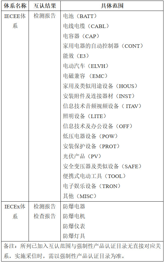我國(guó)已加入IEC相關(guān)合格評(píng)定體系互認(rèn)范圍(截至2022年12月31日)