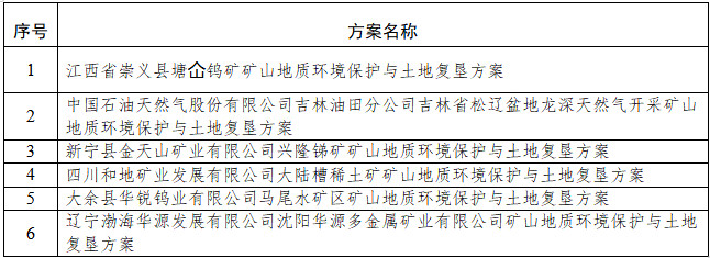 自然資源部關(guān)于江西省崇義縣塘仚鎢礦等6個(gè)礦山地質(zhì)環(huán)境保護(hù)與土地復(fù)墾方案通過審查的公告