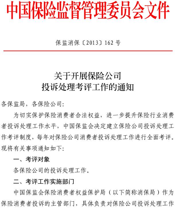 本文關(guān)鍵詞: 保監(jiān)消保, 保險(xiǎn)公司, 投訴, 處理, 考評(píng), 通知, 全文