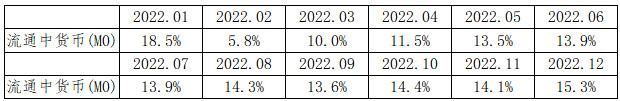 注4:自2022年12月起,“流通中貨幣(M0)”含流通中數(shù)字人民幣。12月末流通中數(shù)字人民幣余額為136.1億元。修訂后,2022年各月末M1、M2增速無明顯變化。修訂后M0增速如下: