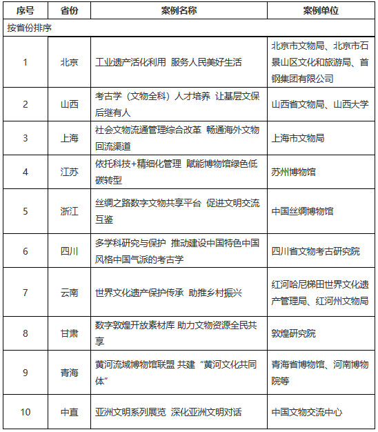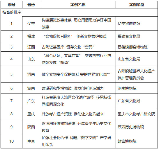 文物事業(yè)高質(zhì)量發(fā)展十佳案例名單