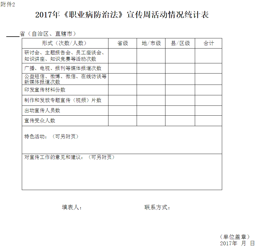 2.2017年《職業(yè)病防治法》宣傳周活動(dòng)情況統(tǒng)計(jì)表