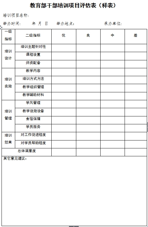 教育部干部培訓(xùn)項(xiàng)目評(píng)估暫行辦法