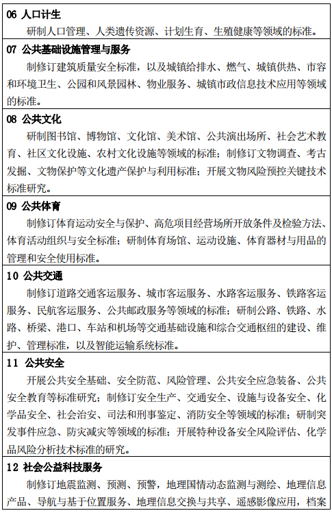 按照創(chuàng)新社會管理,推進基本公共服務(wù)均等化的要求,大力開展公共教育、就業(yè)服務(wù)、社會保險、基本社會服務(wù)、公共醫(yī)療衛(wèi)生、人口計生、公共基礎(chǔ)設(shè)施管理與服務(wù)、公共文化、公共交通、公共安全以及社會公益科技服務(wù)等領(lǐng)域的標(biāo)準(zhǔn)研究,制修訂800項與人民生活密切相關(guān)的服務(wù)安全和質(zhì)量標(biāo)準(zhǔn),建立社會管理和公共服務(wù)標(biāo)準(zhǔn)體系。加強標(biāo)準(zhǔn)實施與監(jiān)督,加大社會管理和公共服務(wù)重要基礎(chǔ)標(biāo)準(zhǔn)、強制性標(biāo)準(zhǔn)的宣貫力度,選擇300個具有明顯資源優(yōu)勢、區(qū)域優(yōu)勢的省、市、縣,開展社會管理和公共服務(wù)標(biāo)準(zhǔn)化試點,使標(biāo)準(zhǔn)成為提高社會管理與公共服務(wù)質(zhì)量和政府服務(wù)績效的有效手段,促進社會管理與公共服務(wù)水平的提升。
