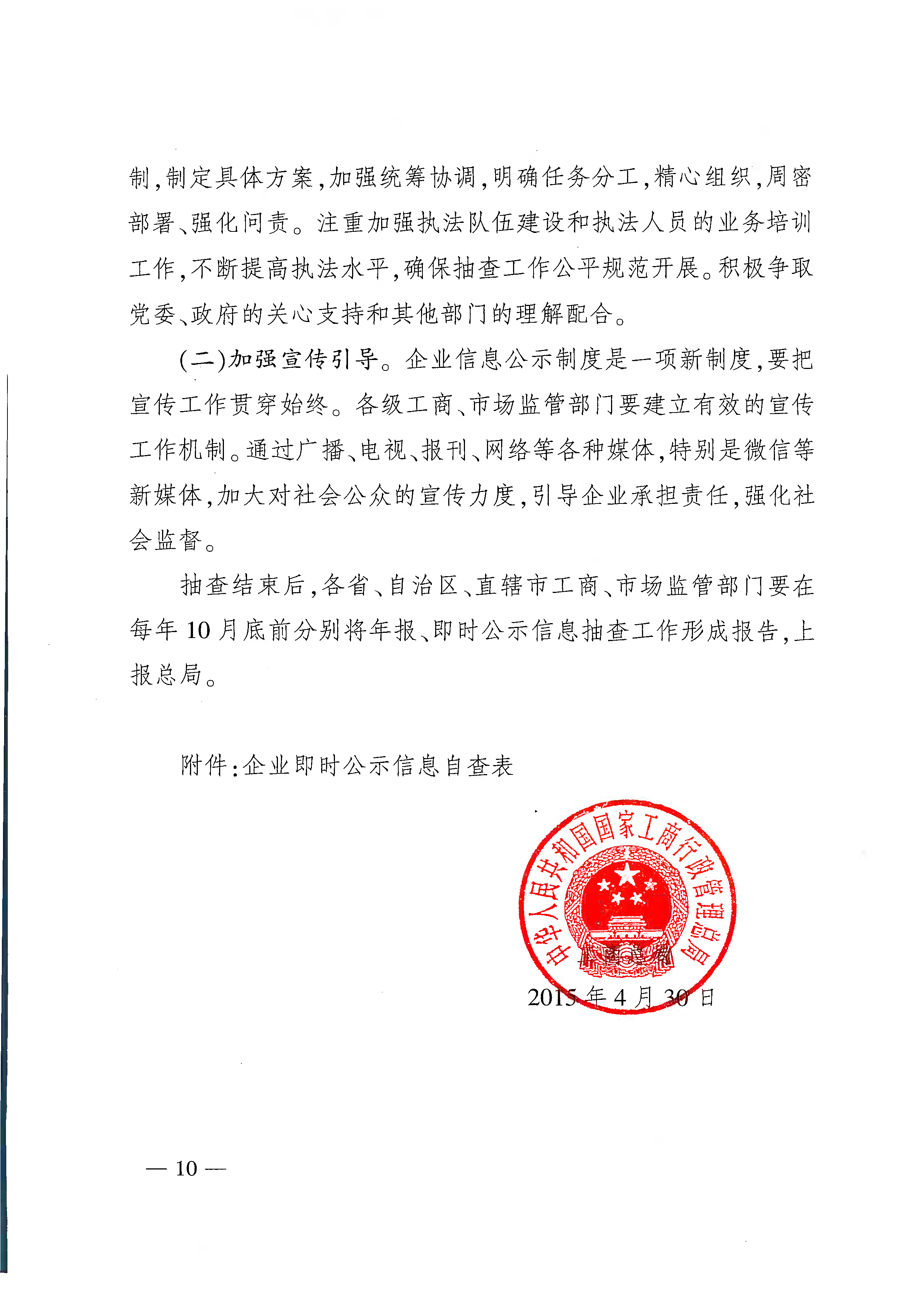 工商企監(jiān)字〔2015〕59號《工商總局關(guān)于做好企業(yè)公示信息抽查工作有關(guān)問題的通知》