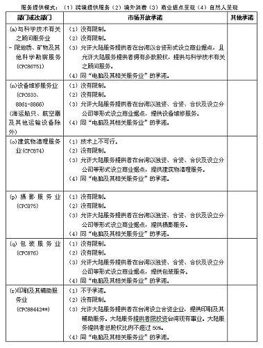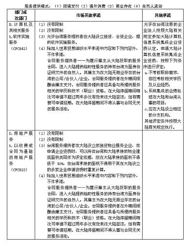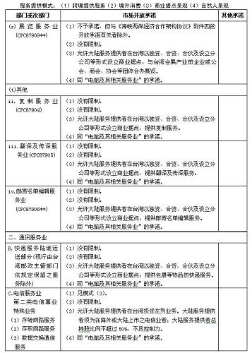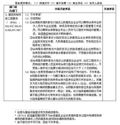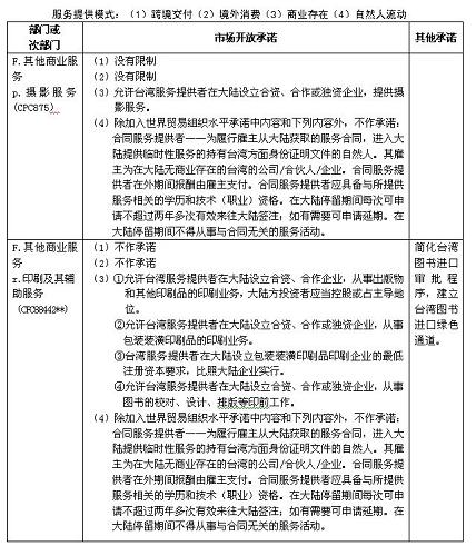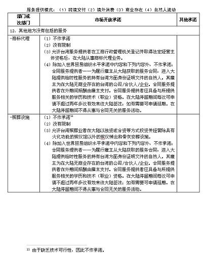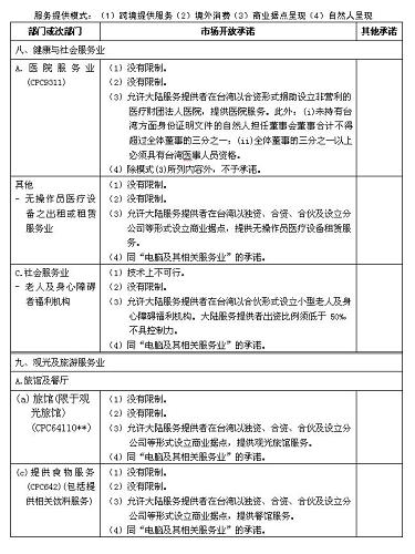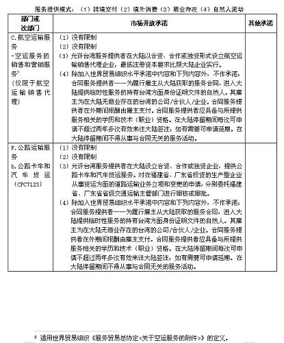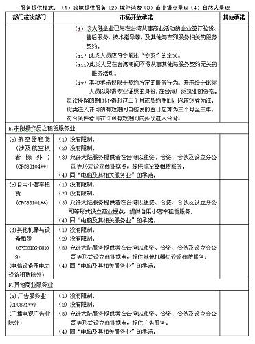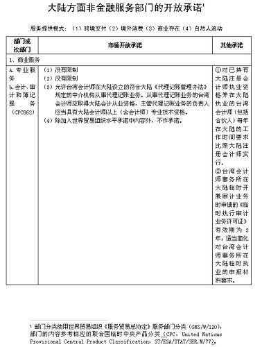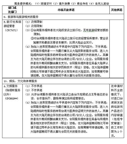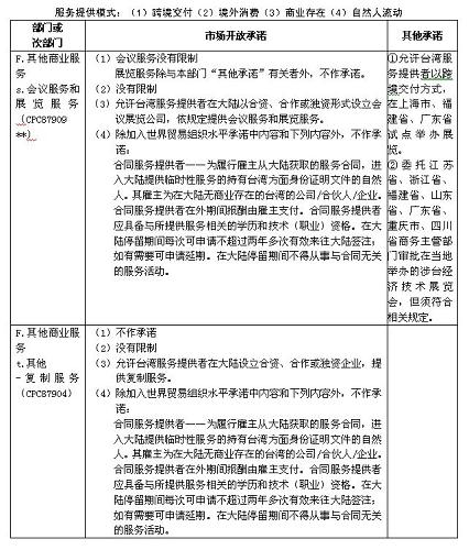 雙方同意,關(guān)于本協(xié)議附件一和《海峽兩岸經(jīng)濟(jì)合作框架協(xié)議》附件四所列并超出各自在世界貿(mào)易組織承諾的服務(wù)部門(mén)及市場(chǎng)開(kāi)放承諾中的服務(wù)提供者(注19),具體規(guī)定如下: