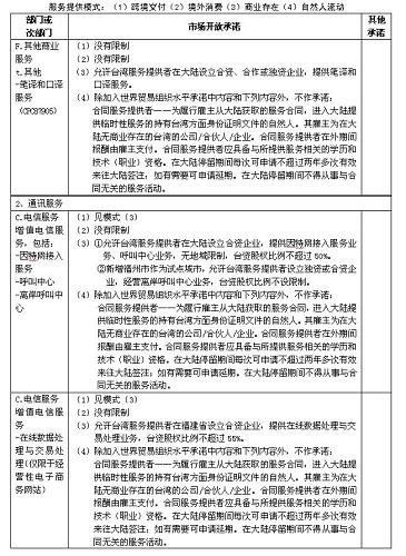 一、逐步減少或消除雙方之間涵蓋眾多部門(mén)的服務(wù)貿(mào)易限制性措施,促進(jìn)雙方服務(wù)貿(mào)易進(jìn)一步自由化及便利化;
