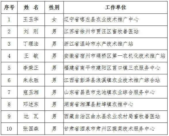 “全國十佳農(nóng)技推廣標(biāo)兵”2019年度資助項(xiàng)目人選名單