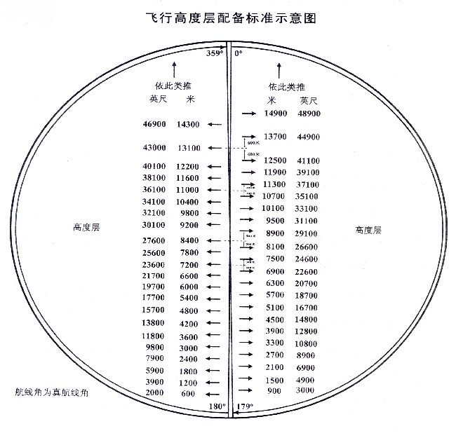 第二項(xiàng)修改為:“真航線角在180度至359度范圍內(nèi),高度由600米至8400米,每隔600米為一個(gè)高度層;高度由9200米至12200米,每隔600米為一個(gè)高度層;高度在13100米以上,每隔1200米為一個(gè)高度層。”