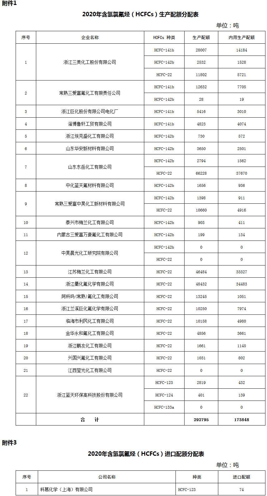 1.2020年含氫氯氟烴(HCFCs)生產(chǎn)配額分配表