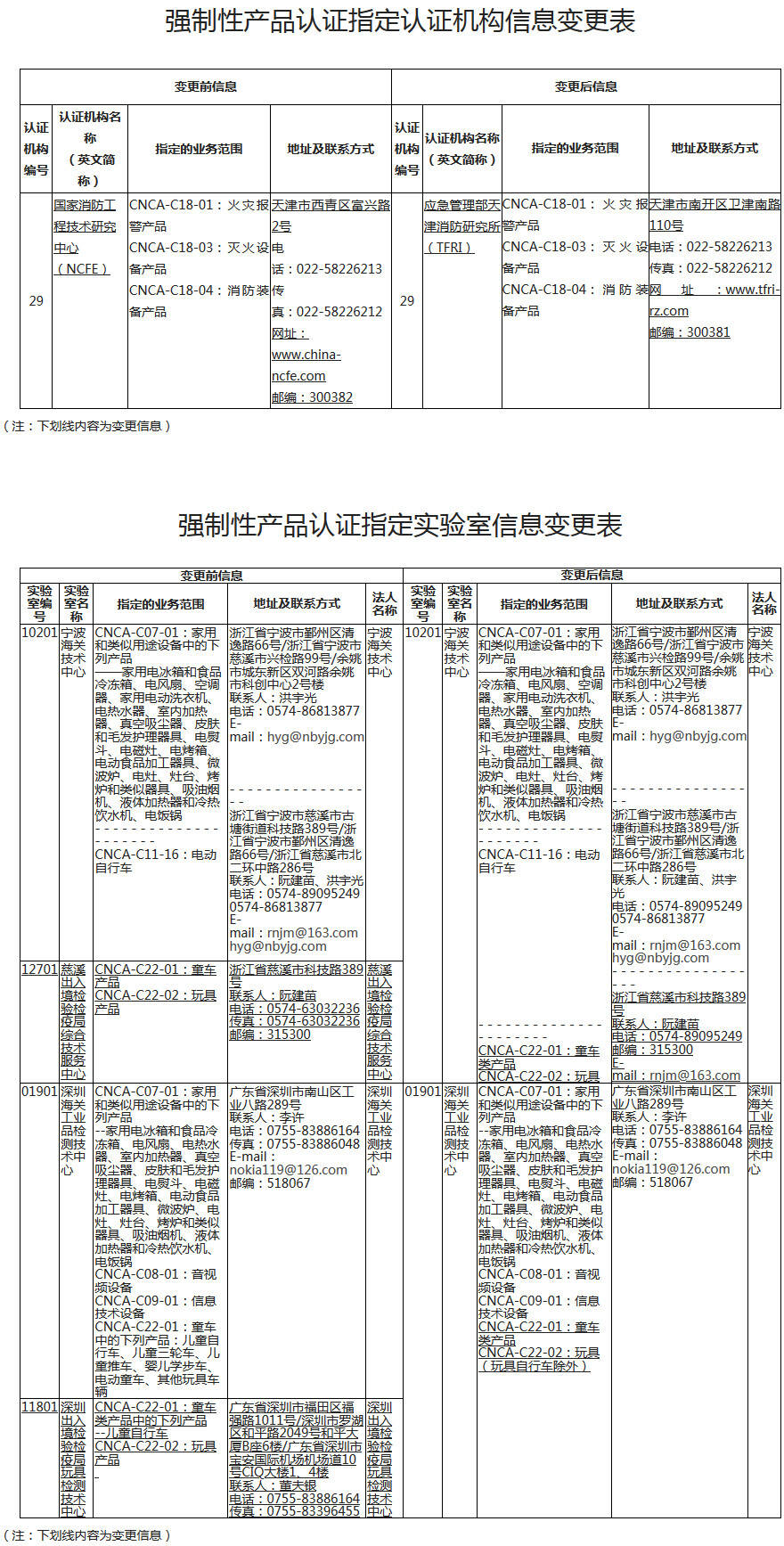 認(rèn)監(jiān)委關(guān)于部分強(qiáng)制性產(chǎn)品認(rèn)證指定機(jī)構(gòu)信息變更及注銷(xiāo)的公告