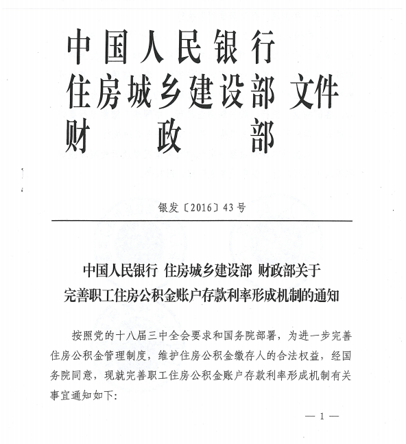 本文關(guān)鍵詞: 銀發(fā)〔2016〕43號(hào), 財(cái)政部, 中國人民銀行, 住房和城鄉(xiāng)建設(shè)部, 完善, 住房公積金, 賬戶, 存款利率, 形成機(jī)制, 通知