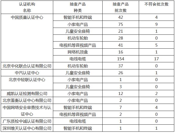 有關(guān)認(rèn)證機(jī)構(gòu)涉及的抽查產(chǎn)品種類、批次數(shù)、不符合批次數(shù)詳見(jiàn)下表。