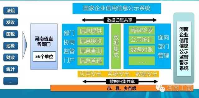 國家企業(yè)信用信息公示系統(tǒng)(河南),由面向社會公眾的企業(yè)信用信息公示平臺與面向政府各監(jiān)管部門的協(xié)同監(jiān)管平臺兩個平臺構(gòu)成,具有公示、監(jiān)管、警示三個作用,具備公示查詢功能、聯(lián)動監(jiān)管功能、決策輔助功能等三大功能。