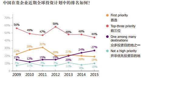越來越多的受訪企業(yè)認(rèn)為,中國現(xiàn)在只是其全球投資的“眾多投資目的地之一”。有高達(dá)31%的受訪企業(yè)表示無計劃擴(kuò)大在中國的投資,這是自2009年全球金融危機(jī)以來最高的數(shù)字。