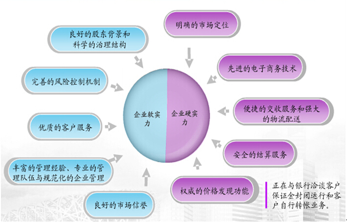 我國的大宗商品現(xiàn)貨電子交易市場不同于國外的電子交易市場,屬中國特有,原因是國外的現(xiàn)貨交易發(fā)展到一定程度之后產(chǎn)生線上電子交易,類似芝加哥商品交易所 (LME)等期貨交易市場,而我國電子交易市場是產(chǎn)業(yè)互聯(lián)網(wǎng)發(fā)展到一定階段的產(chǎn)物,處在不規(guī)范向規(guī)范過度的清整狀態(tài),雖有一定的產(chǎn)業(yè)的基礎(chǔ)但又不同于傳統(tǒng) 產(chǎn)業(yè)貿(mào)易和期貨交易的中間交易模式,所以其商業(yè)模式即融合了產(chǎn)業(yè)貿(mào)易的一些特點(diǎn),也借鑒期貨交易的元素。