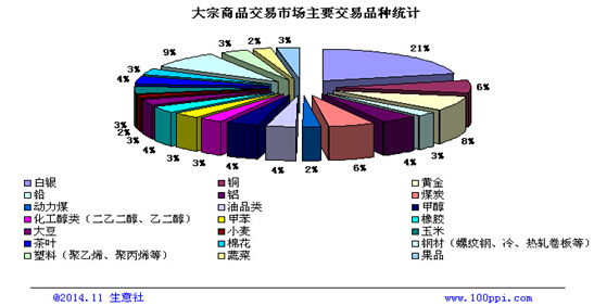 交易品種上。目前我國“互聯(lián)網(wǎng)+大宗商品“的大宗商品電子交易市場中,交易品種最多的是白銀,以白銀為主要品種的交易所在所有市場中占了21%,其次為金屬和鋼鐵類產(chǎn)品占比9%,全部而言,占比2-4%的交易品種最多,集中在化工類、橡塑類和農(nóng)產(chǎn)品類產(chǎn)品上。