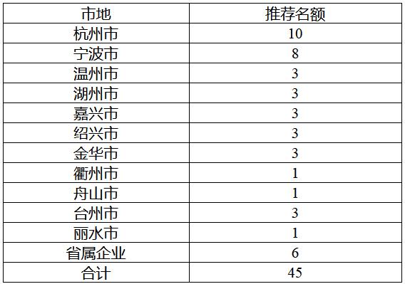 今年計(jì)劃認(rèn)定評(píng)審30名左右正高級(jí)經(jīng)濟(jì)師,按照各市經(jīng)濟(jì)總量和入圍“2020年中國(guó)企業(yè)500強(qiáng)”、“2020年浙江省百?gòu)?qiáng)企業(yè)”上榜企業(yè)數(shù)等情況進(jìn)行分配,各市按照推薦名額進(jìn)行推薦,省級(jí)大型國(guó)有企業(yè)由省國(guó)資委推薦(具體推薦名額分配見(jiàn)附件3)。