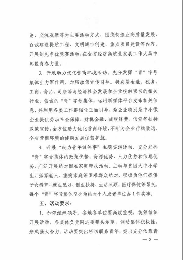 共青團(tuán)河南省委辦公室關(guān)于在全省“青”字號(hào)集體中開展“崗位建功新時(shí)代建黨百年展風(fēng)采”活動(dòng)的通知