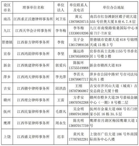 江西省企業(yè)破產(chǎn)管理人協(xié)會設(shè)區(qū)市聯(lián)系對接理事單位及聯(lián)系人名冊
