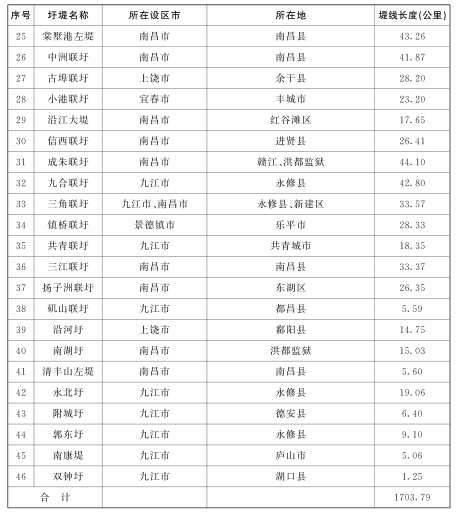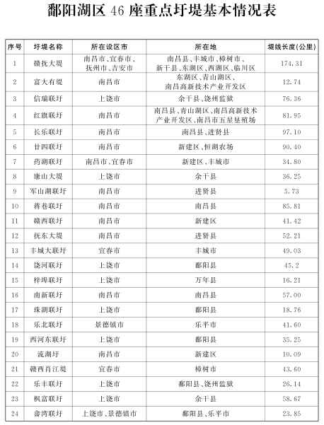 附件:鄱陽湖區(qū)46座重點圩堤基本情況表