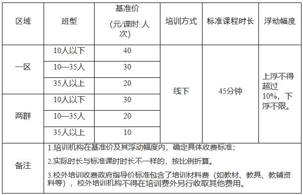二、線下學(xué)科類校外培訓(xùn)收費政府指導(dǎo)價標(biāo)準(zhǔn)