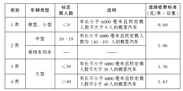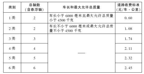 三、收費標準:除國家規(guī)定免繳通行費的車輛外,其他車輛均按以下標準繳納車輛通行費。