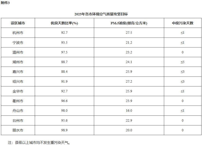(一)攻堅(jiān)目標(biāo)。到2025年,縣級(jí)以上城市不發(fā)生重度及以上污染天氣,設(shè)區(qū)城市中度污染天數(shù)比率控制在0.5%以內(nèi),設(shè)區(qū)城市環(huán)境空氣質(zhì)量?jī)?yōu)良天數(shù)比率達(dá)到94%,PM2.5年均濃度達(dá)到24.3微克/立方米,臭氧濃度穩(wěn)中有降。