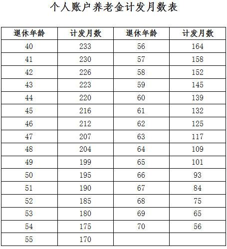 1.個人賬戶養(yǎng)老金計發(fā)月數(shù)表