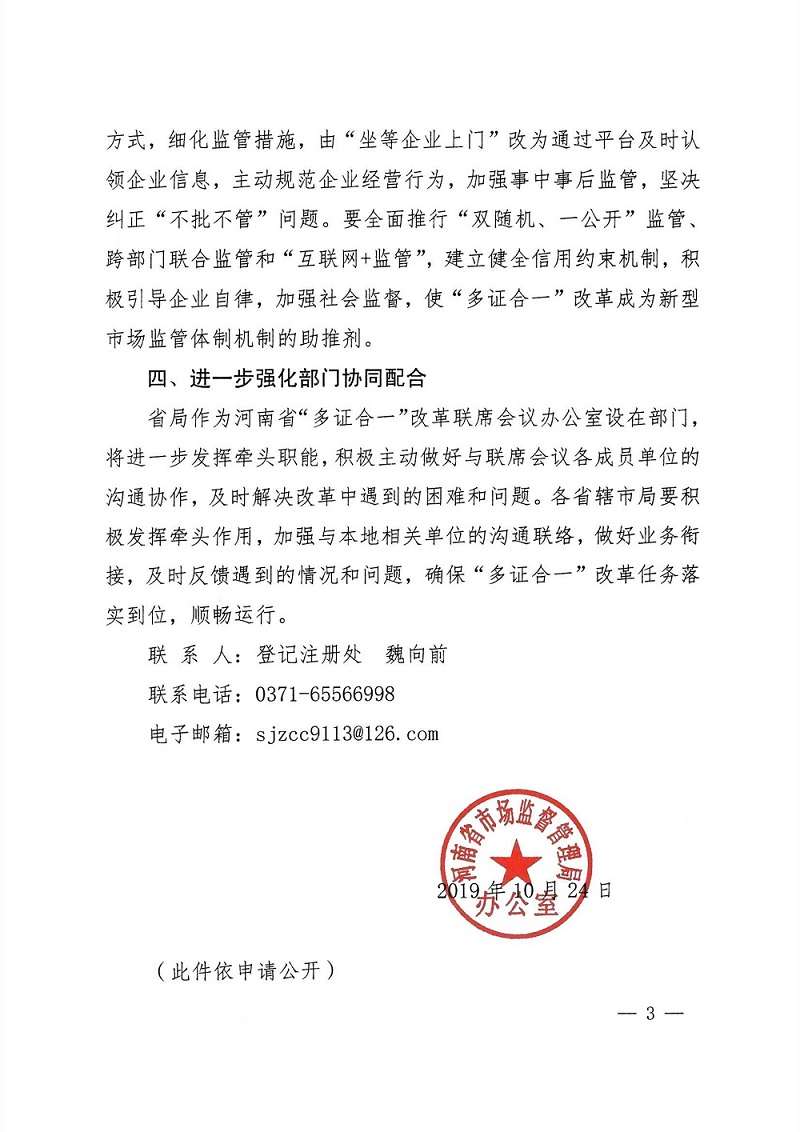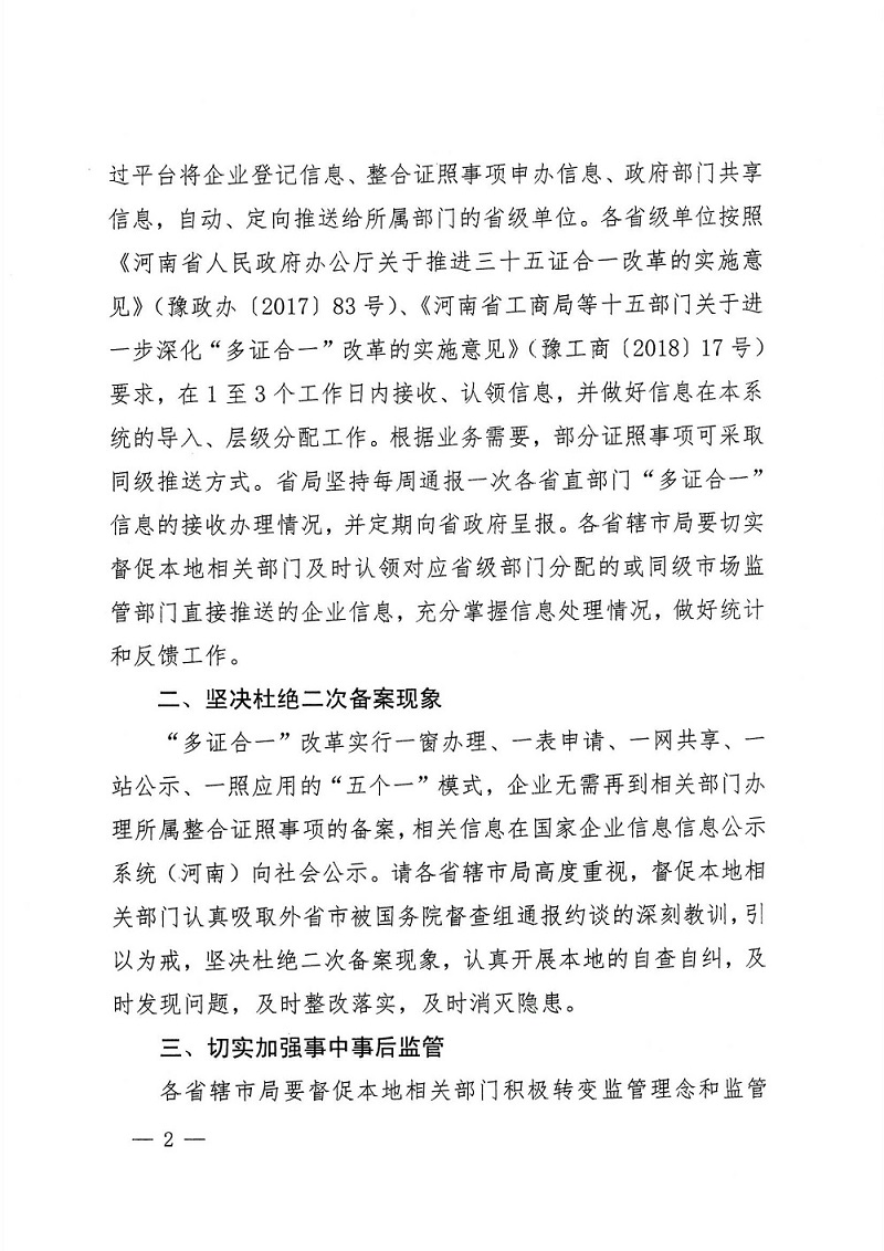 河南省市場監(jiān)督管理局辦公室關于進一步做好“多證合一”改革工作的通知