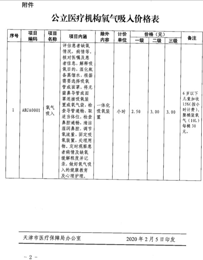 津醫(yī)保局發(fā)〔2020〕8號《天津市醫(yī)療保障局天津市衛(wèi)生健康委員會關(guān)于規(guī)范公立醫(yī)療機構(gòu)氧氣吸入價格政策的通知》
