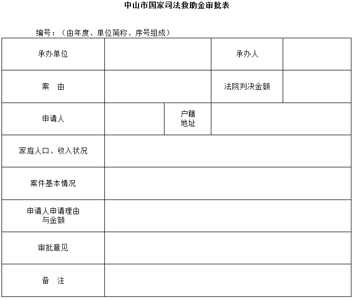 中山市國(guó)家司法救助金審批表