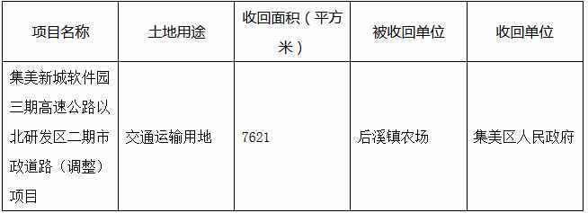 廈門市人民政府集美新城軟件園三期高速公路以北研發(fā)區(qū)二期市政道路(調(diào)整)項(xiàng)目建設(shè)用地土地征收和收回國有土地的通告