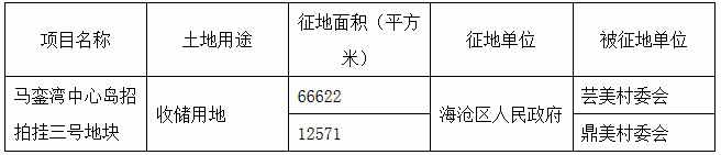 廈門市人民政府關(guān)于馬鑾灣中心島招拍掛三號地塊項(xiàng)目建設(shè)用地土地征收的通告