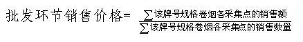 第十一條 卷煙批發(fā)環(huán)節(jié)銷(xiāo)售價(jià)格,按照稅務(wù)機(jī)關(guān)采集的所有卷煙批發(fā)企業(yè)在價(jià)格采集期內(nèi)銷(xiāo)售的該牌號(hào)、規(guī)格卷煙的數(shù)量、銷(xiāo)售額進(jìn)行加權(quán)平均計(jì)算。計(jì)算公式為: