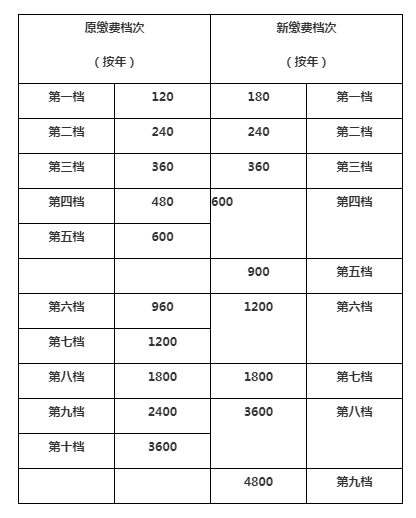 城鄉(xiāng)居民基本養(yǎng)老保險(xiǎn)參保人可在2020年6月24日前,向各轄區(qū)辦稅服務(wù)大廳(全城通辦)申請個(gè)人繳費(fèi)檔次的修改,參保人逾期沒有申請修改的,將按過渡后的繳費(fèi)檔次繳納城鄉(xiāng)居民養(yǎng)老保險(xiǎn)費(fèi),繳費(fèi)檔次的過渡標(biāo)準(zhǔn)如下: