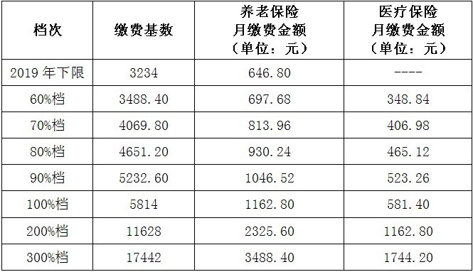 (三)醫(yī)療保險的繳費檔次標準,將根據(jù)新社平工資(5814元)進行調整。